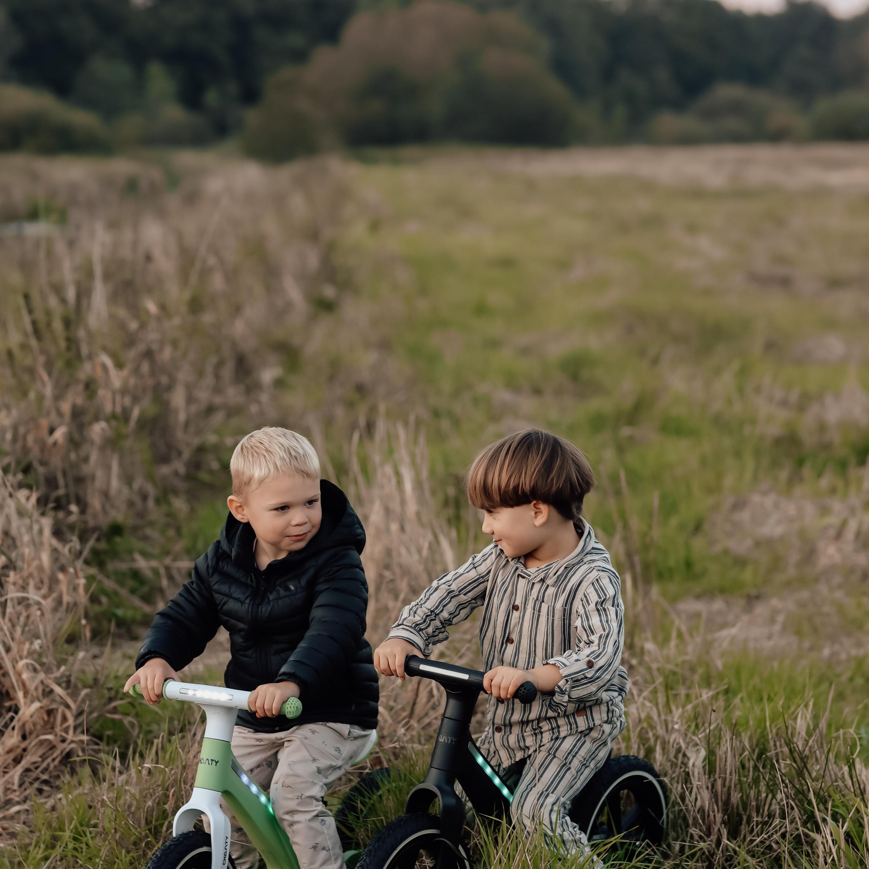 CHANTY Go 2-pakken er den perfekte løsning til familier med børn! Pakken indeholder to flotte sorte løbecykler med integreret LED-lys – letvægts, robuste og designede til at støtte barnets motoriske udvikling og balance. Begge cykler har justerbar sadel, opustelige lufthjul og ergonomiske TPR-håndtag. Ideel til søskende, der vil ud og lege sammen fra dag ét.